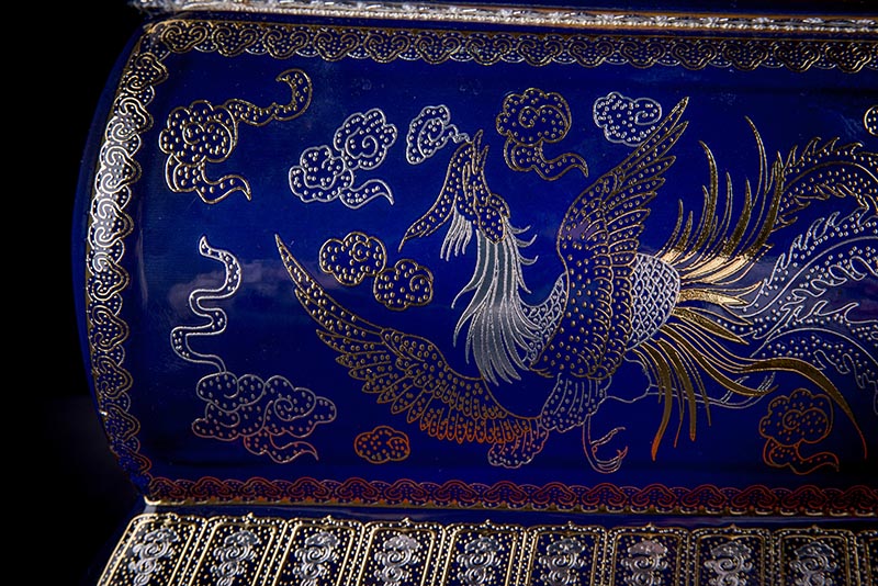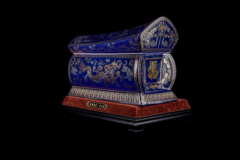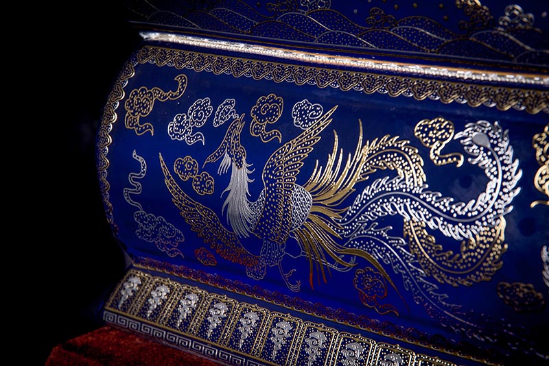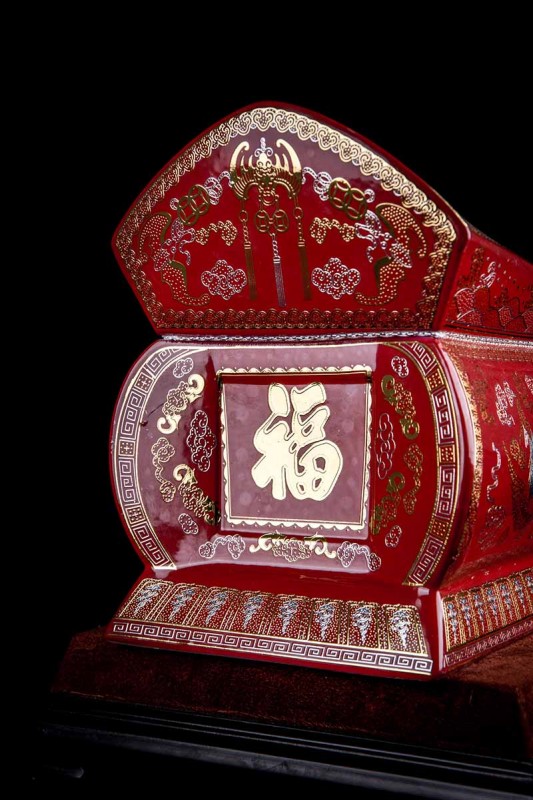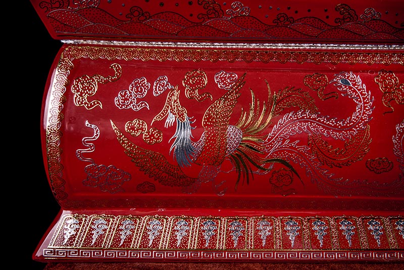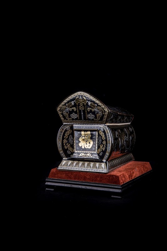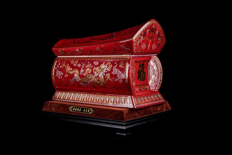 這款【金銀龍鳳】系列產(chǎn)品器型是傳統(tǒng)的長(zhǎng)棺造型,古人常說(shuō):見(jiàn)棺者,升官發(fā)財(cái),可見(jiàn)它的美好寓意。我們可以看到這款產(chǎn)品,一面龍,一面鳳,素有“龍鳳呈祥”一說(shuō),采用的是“錯(cuò)金銀”工藝,它是中國(guó)非物質(zhì)文化遺產(chǎn)名錄的一項(xiàng)美麗的藝術(shù),源自于“春秋戰(zhàn)國(guó)時(shí)期”至今已經(jīng)2000多年,把這種精湛工藝運(yùn)用到我們永生盒,既是傳承,亦是發(fā)揚(yáng)!尺寸:400x220x290mm