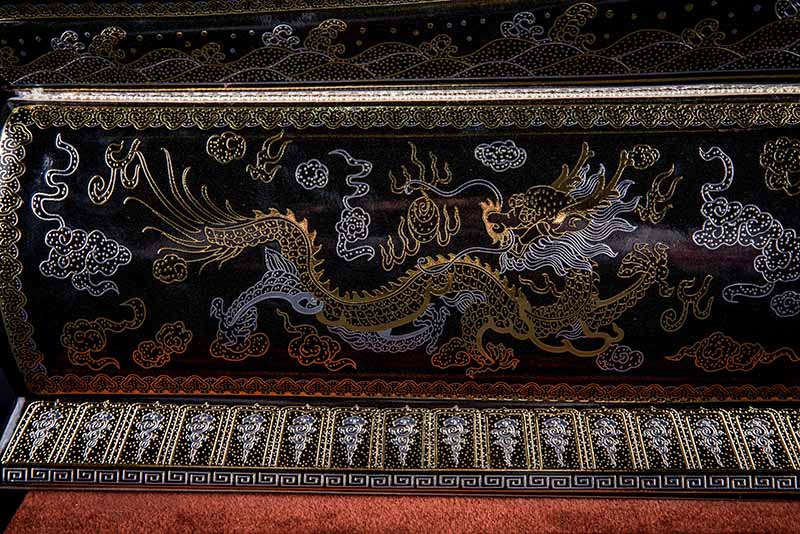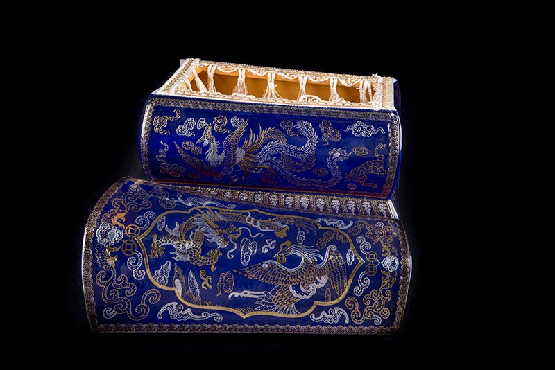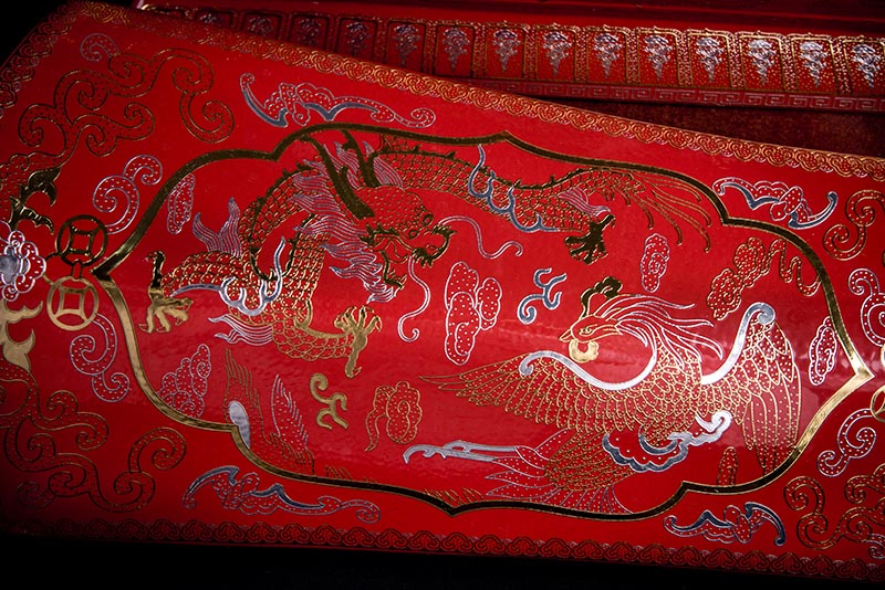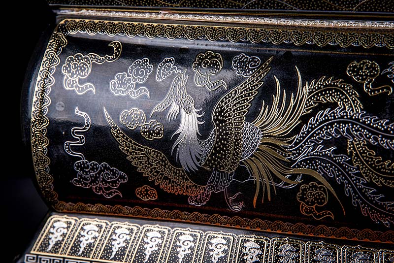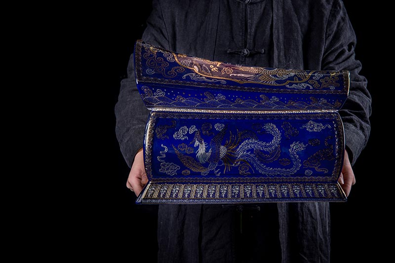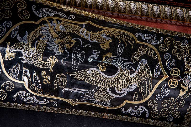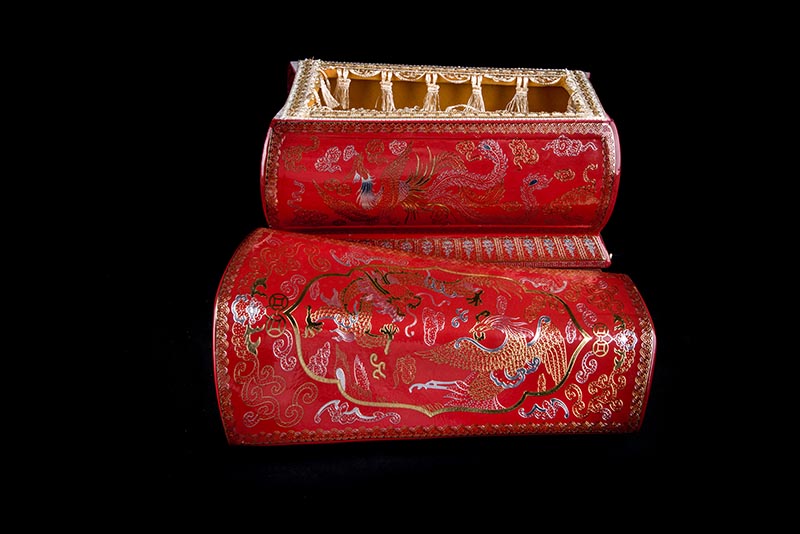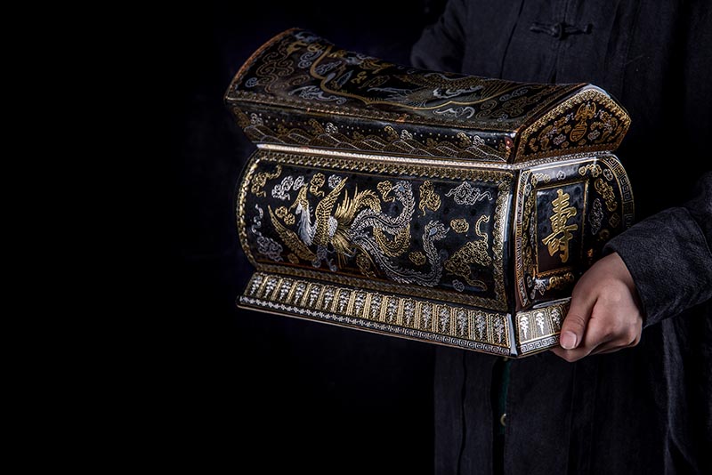 這款【金銀龍鳳】系列產(chǎn)品器型是傳統(tǒng)的長(zhǎng)棺造型,古人常說(shuō):見(jiàn)棺者,升官發(fā)財(cái),可見(jiàn)它的美好寓意。我們可以看到這款產(chǎn)品,一面龍,一面鳳,素有“龍鳳呈祥”一說(shuō),采用的是“錯(cuò)金銀”工藝,它是中國(guó)非物質(zhì)文化遺產(chǎn)名錄的一項(xiàng)美麗的藝術(shù),源自于“春秋戰(zhàn)國(guó)時(shí)期”至今已經(jīng)2000多年,把這種精湛工藝運(yùn)用到我們永生盒,既是傳承,亦是發(fā)揚(yáng)!尺寸:400x220x290mm