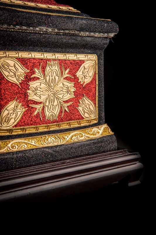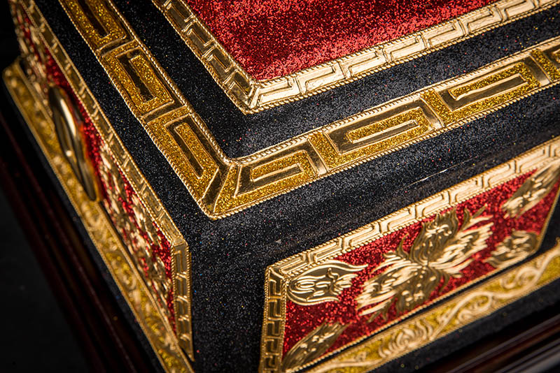寓意:高潔不群,永垂不朽產(chǎn)品特征:24K金線漆線雕工藝,具特色的傳統(tǒng)民間手工藝精品,精細雕刻,線條流暢,顏色搭配簡約大氣,松鶴延年圖案更是寓意福壽延年。